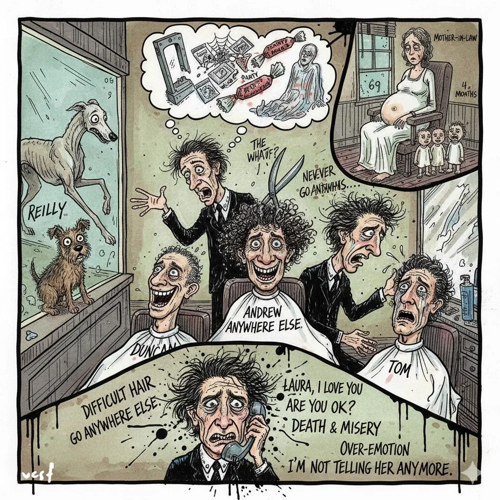 You’ve made me all the things that are missing... he felt a cold dread. That was it, the truth of the complexity of hairdressing. The price wasn't just for the skill; the surcharge was for the emotional labour, the act of being the nourishment these women, starved in their financially free cages, so desperately sought. He was the empty space they filled. The sympathetic ear. The gentle touch. The one who made them feel wanted. The one they mistakenly thought loved them and he resented it.