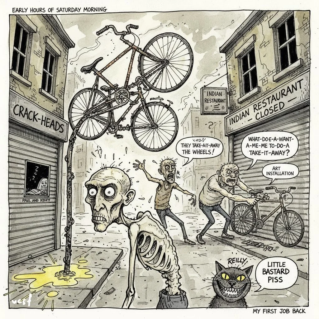 I looked around like someone was following me, scanning for anyone else up in the early hours of a Saturday morning. No one. Even the crack-heads across the street didn’t have their lights on. And in the basement flat underneath them, Paul and Keely were tucked up in bed. The Indian restaurant opposite was closed as usual; I’m not even sure it’s ever open.